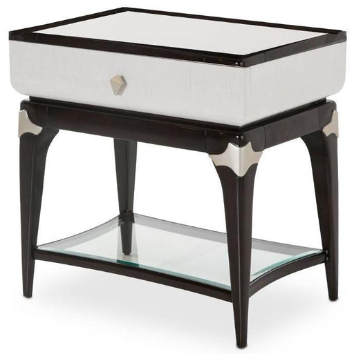Paris Chic Collection by AICO Furniture Espresso finish Made of Figured Eucalyptus and Anigre Veneers Velvet lined with self-closing glides Silver...