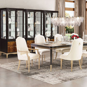 AICO Malibu Crest Side Chair in Crotch Mahogany (Set of 2) 9007003-824. Your luxury life is waiting on the coast with Malibu Crest. Showcasing creamy champagnes, dramatic curves and eclectic designs, this chic collection was made for interiors that embrace modern elegance.