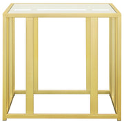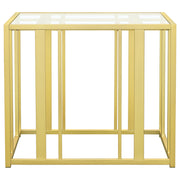 This coffee table set includes a rectangular coffee table and a matching end table, both featuring tempered glass tops and geometric bases crafted from heavy-gauge metal. The open-frame design exudes modern elegance while offering durability and functionality. Scratch-resistant materials ensure lasting quality, making the set ideal for organizing essentials or displaying decor. Its cohesive design provides a sleek, contemporary look for any living room.