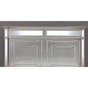 Salamanca Silver Cal.King Bed, 94"L X 82 3/8"W X 65"H, 192.04lbs. Out with the old and in with the new, this silver finished set is unlike any other! With 3mm mirrored panel accents, this set is an elegant choice for a glamorous setting. Each piece is adorned with geometric style wooden trim that emphasizes the sil ver backdrop. Features: Contemporary Style 3mm Mirror Panel Accents Crystal-like Acrylic Drawer Pulls Turned Legs Solid Wood/Wood Veneer/Others Silver Finish