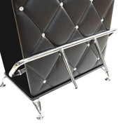Fuero Black/Chrome Bar Table (K/D), 47 1/4"L X 19 7/8"W X 41 3/4"H, 91.52lbs. This deliciously modern bar table is all about the glam. This bar features a glossy lacquer coating, shining chrome bar handles and legs, and a button tufted siding make for an eclectic blend of textures and materials that set the mood for a fun nigh t of drinks. Features: Contemporary Black Leatherette, Metal, Others Metal Accents Button Tufting Open Back Storage