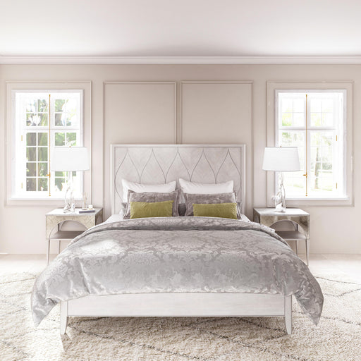 A classic wingback headboard evokes the feeling of an antique piece, presented in a finely tailored ivory upholstery with dove gray legs that suits...