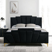 Coming in a bold color, this bed stays true to its glam roots. Between the classy, shell tufting and the gold-coated steel legs, it is designed for the sophisticated urbanite and their modern city oasis. The thick and padded headboard and footboard are upholstered in soft flannelette, so are the side rails and the rest of the piece--luxury and comfort rolled into one stunning product.