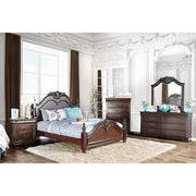 Intricate accents give this English style bedroom set a unique personality. The beds low post design is coupled with ornamental details in the headboard, footboard, and mirror. An optional lingerie chest with a jewelry case on top completes this wonderful suite finished in cherry.