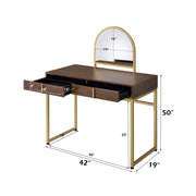 Coleen - 50" Vanity Desk With Mirror & Jewelry Tray - Walnut & Gold