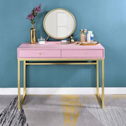 Coleen - Vanity Desk With Mirror & Jewelry Tray - Pink & Gold