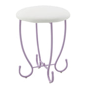 - Stool: Padded Seat Cushion: White PU, Base: Scrolled Metal Trim, Purple Powder Coating (No Arms/Backrest)