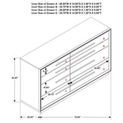 Geometric features from this California king four-piece bedroom set transform a modern setting. Warm and full of depth, the high headboard features upholstery and a smoked peppercorn finish. Complete with ample storage, this set has a nine-drawer dresser and two-dresser nightstand and included shelf. Welcome structure from the silhouette and personality from the retro inspired details. Dress up the dresser with the clean and elongated mirror.