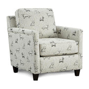 POCKLINGTON Accent Chair, Dog, 30 1/2"L X 36 1/2"W X 39 1/2"H, 46lbs. A true bestseller! A subtle paisley print is wonderfully enhanced by fun and furry foreground images that depict an array of cute doggies! The modern squared design features tapered wood legs, an extra-full seat, firm back cushion, rounded padded arms and welt cord trim. It's the perfect chair for an animal-lovers home, ideal for any human or dog to cozy up in.