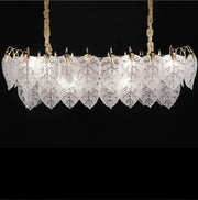 AICO Furniture Lighting Autumn Rectangular Light Chandelier in Clear LT-CH972-12CLR. Design with organic shapes in mind! The Autumn chandelier set features frosted glass leaves, gently curled edges, gold accents, and a whimsical style guaranteed to light up any home.