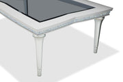 - Table top has inset beveled glass panels with decorative crystal mesh in the apron