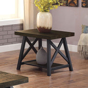 This sleek table collection brings the perfect blend of style and comfort to your home, adding the perfect ambiance to any occasion! The thick, rectangular tabletops provide a spacious and intriguing wood grain surface while the X-shaped metal sides provide additional support to draw attention towards the lower shelves.