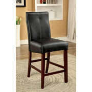BONNEVILLE II Brown Cherry/Black Counter Ht. Chair (2/CTN), 21 1/2"W X 19"D X 42 1/2"H, 28.6lbs. Beautifully sleek, this set is great for any contemporary home. Parson style chairs angle eccentrically to emphasize the complete padded leatherette upholstery and contrast stitching. Features: Contemporary Style Leatherette Parson Chair Solid Wood, Wood Veneer, Others Cherry & Black Finish