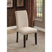 Make your dining room a stylish force to be reckoned with when you add this transitional set. The lengthy table is composed of a stylish faux marble top and features subtle fluted details along the legs to offer an even more majestic impression. A nailhead trim traces the edges of the light fabric chairs and dining bench, guiding eyes down to the contrasting leg finish. Also available in counter height.