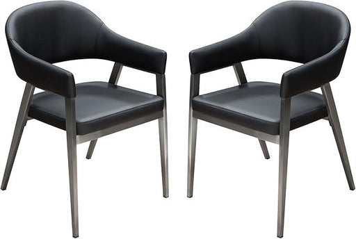 Adele Set of Two Dining/Accent Chairs in Black Leatherette w/ Brushed Stainless Steel Leg