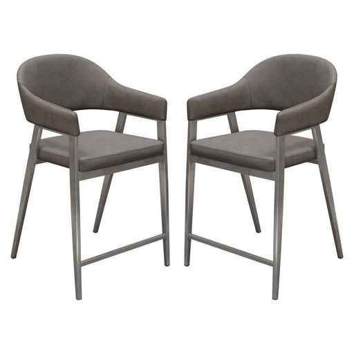 Adele Set of Two Counter Height Chairs in Grey Leatherette w/ Brushed Stainless Steel Leg
