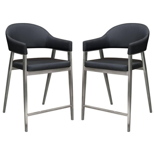Adele Set of Two Counter Height Chairs in Black Leatherette w/ Brushed Stainless Steel Leg