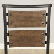 Characterize your dining room with this rustic industrial dining set. Bolt accents add bold detail to the ladder back chairs and vibrant upholstery creates warming accents. The wooden bench flares with angled legs and its sleek wooden seats offer soothing comfort. Tied together with a spacious wooden table, the set blends beautifully in your home. The airy table base welcome natural light and splayed legs create visual intrigue that leaves your dining room with a tempting allure.