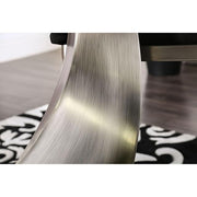 ORLA Silver/Black Dining Table, 60"L X 36"W X 30"H, 136lbs. Graceful and dignified, this one-of-a-kind table will make any meal feel like a fanciful feast. Featuring a unique chrome base, this stunning fixture sits atop a contrasting black flat base as it holds up a beveled edge glass table top. Complete this piece with the coordinating round cut-out metal back chairs, which feature black foam filled seat cushions. Features: Contemporary Style 10mm Tempered Glass Table Top U-Shaped Post & Black Base Sturdy Metal Construction Powder Coated Satin Plated