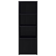 This contemporary media tower combines functionality and modern design in a sleek black finish. Built from durable engineered wood with a scratch-resistant laminate veneer, it features three open shelves for organizing media devices, books, or decor. A bottom cabinet offers concealed storage to keep clutter at bay. Its tall, clean-lined silhouette provides vertical storage, perfect for maximizing space in living rooms, home offices, or entertainment areas.