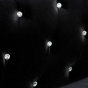 JOLANDA II Black Sectional, Black, 98"L X 98"W X 34 5/8"H, 281lbs. A regal design to fit with any upscale living room, this sectional incorporates traditional and modern styles together. Crystal-like acrylic buttons adorn the tufting along the backrest while nailhead trim runs down the armrests as glamorous accents to the structured sectional. Pillows included. Features: Traditional Style Flared Arms Button Tufted Design Nailhead Trim Flannelette Fabric Pillows Included Optional Chair & Ottoman Available Solid Wood, Others Black
