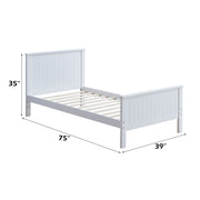 The Bungalow youth bedroom collection will create a clean and refreshing look in your child's bedroom. Features beadboard paneling headboard and footboard and perfectly complemented by clean styled cases. Crafted from selected woods and veneers for strengths and durability, its amazing white finish offers energetic and bright look that will match any interior. This collection is a perfect addition to your child's room as it is designed to fit many styles an decors.