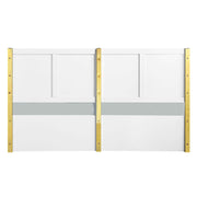 The Gaines Collection is a glamorous and sophisticated grouping that adds a chic style to any room. The white gloss finish and gold metal accents help to accentuate the clean lines of the pieces and add a pop of glamour. The diagonal line design adds visual interest and texture, making each piece stylish. With a variety of storage options to meet your needs.