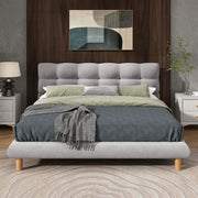 Queen Upholstered Platform Bed Frame With Cookie Shaped Headboard - Gray