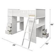 KD, Twin Loft Bed • Slat System Included (16 Slats) • Not Reversible (RF Desk, LF 5Drw Chest) • RF Front Ladder (Not Reversible/Removable) • Easy Access Guard-Rail (Top Bed) • Twin Bottom Bed Sold Separately • Clearance Between Floor and Top Bed: 48 Inches (1213mm)