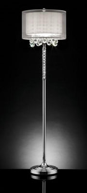 Floor Lamp Product Dimension: 17"DIA X 61 1/2"H, HANGING CRYSTAL Go traditional with hanging crystals and a polished chrome base. This floor lamp also features a double shade that evokes class and luxury.