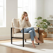 Classic Mid Century Modern Accent Chair With Durable Square Metal Frame, Armchair