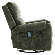 Manual Recliner Massage Chair With Swivel Rocker, 8 Massage Modes, Side Storage Pocket - Green