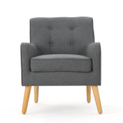 Modern Arm Chair With Tufted Back And Wooden Legs - Charcoal