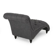 Chaise Lounge With Button Tufted Diamon Stitch - Charcoal