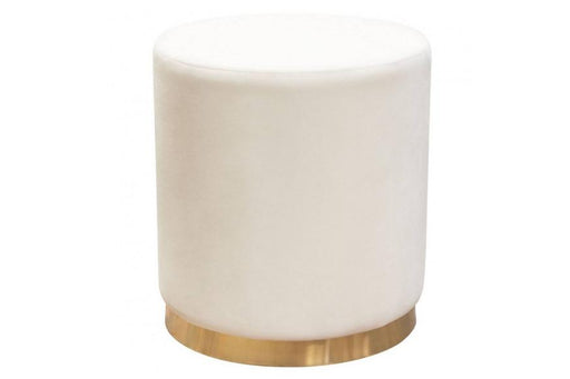 Sorbet Round Accent Ottoman in Cream Velvet w/ Gold Metal Band Accent