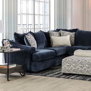 For those looking to balance a minimalist room with a visually hefty piece, this sectional is the perfect choice. The navy chenille is the star of the show--bold yet inviting, the soft fabric uncannily reminds you of the depths of the oceans. Along with contrasting ivory accents, it may also conjure the image of a vast sky in the darkest of nights. The oversized stature of the frame, with wide, low profile arms and loose pillow backs, helps invoke a sense of immense freedom. It's the kind of furniture that fills in the space it is set on, designed to take any home decor up a notch.
