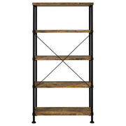 Whether used for studying or plotting your next novel, this writing desk and bookcase set will complete your home office. Industrial in style, the three-drawer writing desk offers plenty of space to store stationary and other small office items. Meanwhile, the four-shelf bookcase is perfect for displaying your book collection, plants, and small decor items. The metal frames of the bookcase and writing desk are finished in a versatile black color with angular lines to offer a hint of character. The antique nutmeg finish on each piece gives a sense of warmth to your space.
