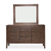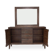 Aico Carrollton Sideboard Mirror in Rustic Ranch KI-CRLN067-407. With the organic tones of ranch styling and the sophistication of modern rustic influences, Carrollton Dining Room Collection by Michael Amini and Kathy Ireland Design Collaboration brings a reclaimed warmth to furniture design. Fine metal accents, layered wood construction, and soft heather textures all offer a stately style for inviting homes.