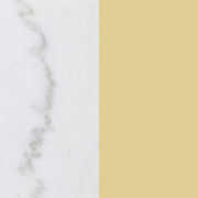 A luscious look, this modern coffee table creates a glamorous aura with its sleek glass and white marble elements. The round smoked tempered glass top rests upon a gleaming white marble shelf, bringing sophistication to any living room. The gold electroplated chrome metal frame, with slim, straight legs, adds a rich, polished finish. The table features crossing stretchers beneath the glass top for added distinction, offering both style and functionality in a luxurious, modern design.