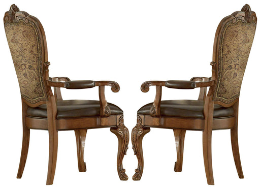 Old World Upholstered Arm Chair in Cherry (Set of 2)