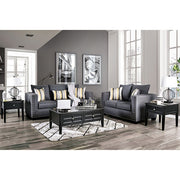 A modern color combination is gray and yellow and this modern sofa collection is a beautiful example of its use. Track arms make for a sleek silhouette. The lines of the set are amplified by the stripes of the throw pillows. The yellow is a perfect pop of color against the cool gray, it adds brightness and character without becoming overwhelming.