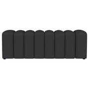 Introduce glam texture and dimension with a decorative upholstered bench. This modern creation features an undulating silhouette without arms or a back, offering sleek style and seating. Perfect for a sophisticated foyer or living room, it adds a pop of color and rich dimensionality with subtle variation in textured fabric. It makes a chic replacement for a coffee table in a linear sitting area, complete with foam cushioning that's firm enough to host a serving tray. Minimal feet create a seamless look and feel in any setting.