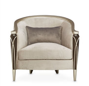 AICO Villa Cherie Matching Accent Chair in Hazelnut N9008835-PRCNI-410. Find your perfect shape with the Villa Cherie Sofa and Matching Chair. Tapered legs and Chardonnay trims instantly brighten any living room while curving arms and backrests add a dynamic elegance you'll only find in Hollywood!