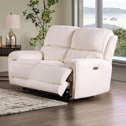 Rocking that perfectly posh trendy look, this reclining living room set really kicks your room's style up a notch. It starts with the boucle fabric; its plush texture complements the plump profile. Subtle details such as the accent stitching add extra flair to the piece. And of course, there's the power recliners that, in a touch of a button, sets you in a position perfect for moments of calm and relaxation.