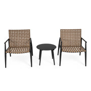 Outdoor Chat Set, 2 Chairs & Side Table - Black / Brown