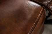 Your comfort comes first with this luxurious reclining set with power recline footrests and headrests. Designed as a zero wall piece, it requires as little as three inches clearance from the wall, giving you plenty of free space in your living room. High density seat cushions and plush fiber-filled back pillows add extra comfort along with smooth, curved tight arms to lay your own arms on. Feel the exquisite texture of the top grain leather on your fingertips as you slowly lean back and relax after a long day.