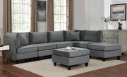 Create your dream couch with these modular pieces! This sectional is made up of pieces that allow you to extend in length; add a couple more of the optional armless chairs and see your living room space come to life. The corner pieces come with colorful patterned pillows, while the optional ottoman adds more seating or improved leg positioning for maximum relaxation and comfort.