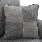Rhian Dark Gray Sectional, 106 3/4"L X 84"W X 35"H, 218.06lbs. Take home this charming sofa set and create the perfect atmosphere for your beautiful home. A perfect contemporary blend of traditional and modern elements, this transitional design is covered in linen-like fabric and features rolled arms for a classic appearance. The overstuffed cushions provide not only a soft and comfortable feel, but also offer a visually sleek look that complements the minimalistic style of this chic sofa set.Features: Transitional Style Rolled Arms Movable Armless Chair Pillows Included Linen-like Fabric Dark Gray