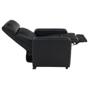 Modern home theater seats are bound to bring the movie experience to your home. Choose your custom configuration of black home theater seats, upholstered in leatherette. Slim track armrests give the chairs stylish appeal along with tufted backrests. Consider the optional consoles to go between each seat and serve as a cup holder. Choose this home theater recliner set to elevate your next home theater adventure.