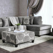 Bonaventura Gray Sectional, 124"L X 79"W X 41"H, 283lbs. This large sectional sofa tells guests that you know how to balance form and comfort. The soothing microfiber upholstering is velvet soft; the smoky color is calming, and the included throw pillows add a chic patterned flair to the ensemble. Give you r friends and family a soothing place to gather around and loosen up. Features: Transitional Gray Microfiber, Solid Wood Frame T-Cushion Seating Rolled Arms Fitted Back Pillows Block Bun Feet Pillows Included